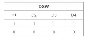 PCSU有源滤波器多模块并联时, DSW 拔码开关设置各并机模块的机号,拨码开关有 4 位,如下图所示: