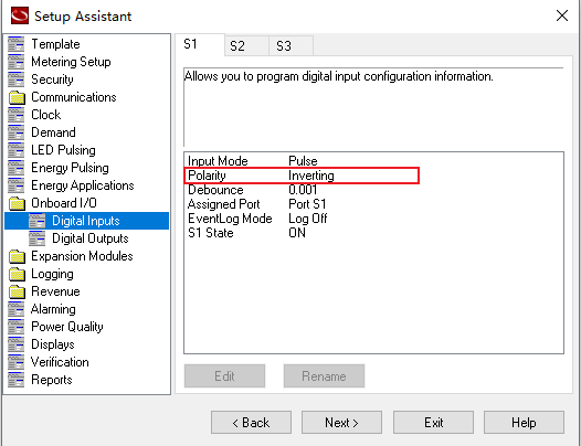 可以设置反转,需要用ION Setup软件将DI的Polarity设置成Inverting,如下图所示: