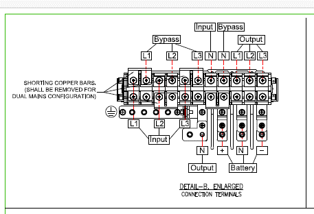 (2)Easy 3M系列UPS有3个电池接线端子,分别是电池+,电池N,电池-。必须确保电池N分别与电池+,电池-的电压相等且极性也正确。